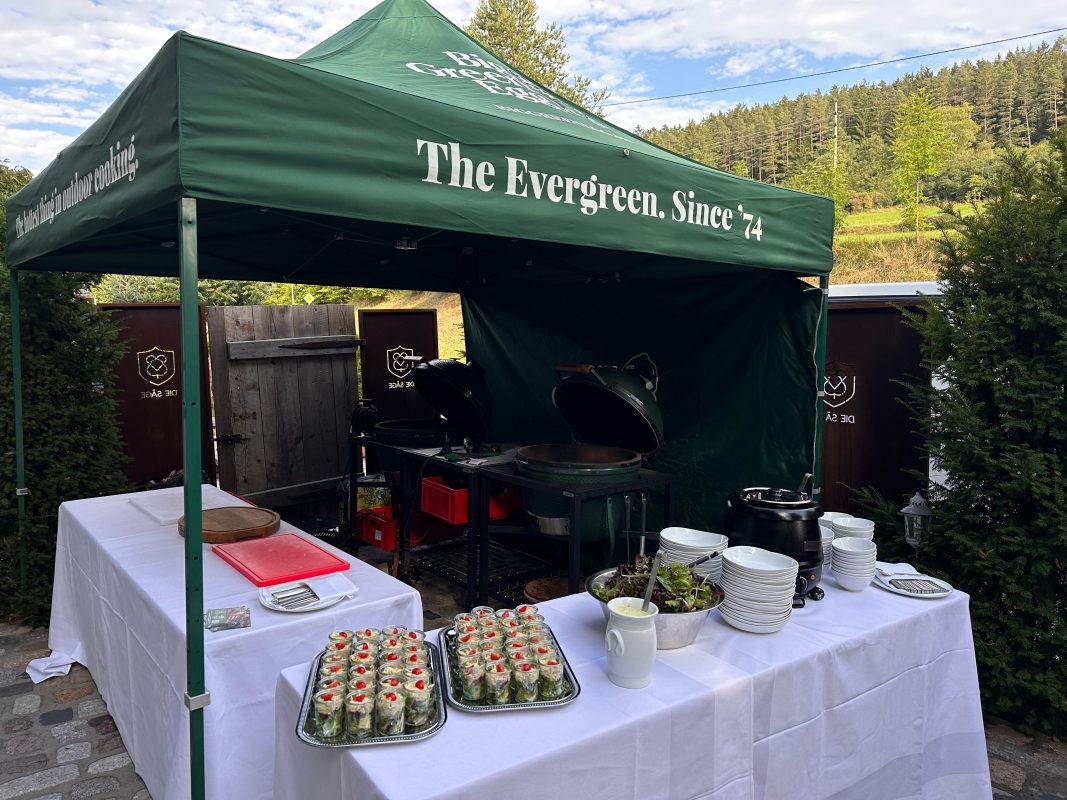 Vergesst klassische Warmhaltebehälter. Bei uns wird das Hauptgericht live vor den Augen eurer Gäste zelebriert. Der sanfte Duft von Buchenholz und die perfekte Zubereitung am Big Green Egg sorgen für einen Show-Effekt, der eure Gäste begeistert und das Eis bricht.
